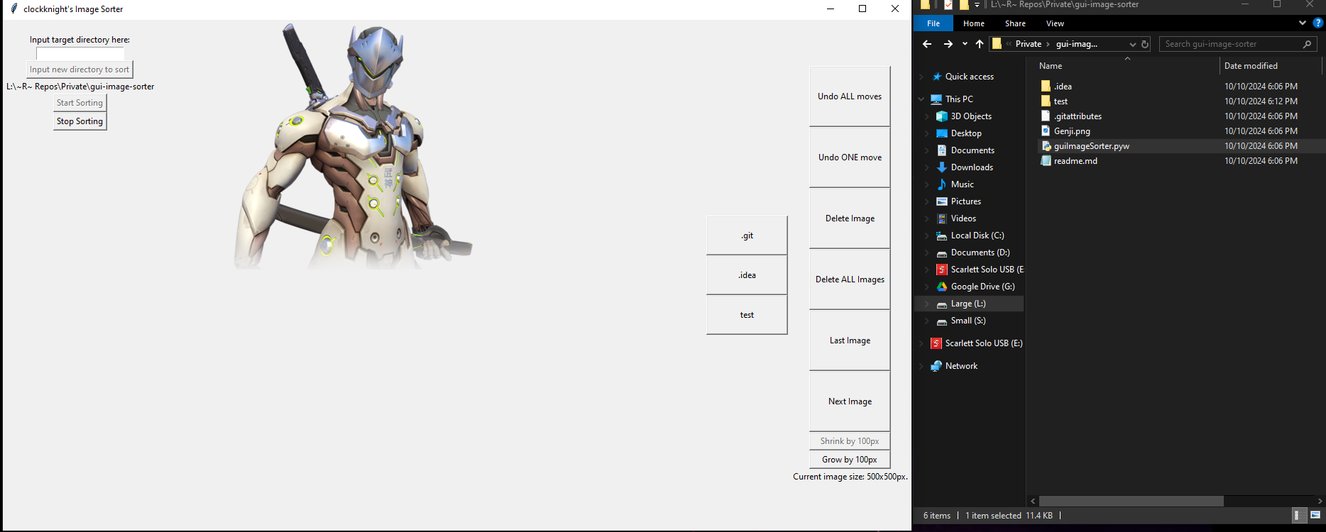 Primary purpose of the code is that you can preview images as you put them into different folders, and all folders are relatively accessible, being able to sort them with all controls available on one window regardless of which file you're looking at.